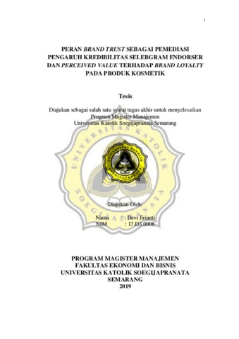 Erianti, Devi (2019) PERAN BRAND TRUST SEBAGAI PEMEDIASI PENGARUH KREDIBILITAS SELEBGRAM ENDORSER DAN PERCEIVED VALUE TERHADAP BRAND LOYALTY PADA PRODUK KOSMETIK. Masters thesis, UNIKA SOEGIJAPRANATA SEMARANG.