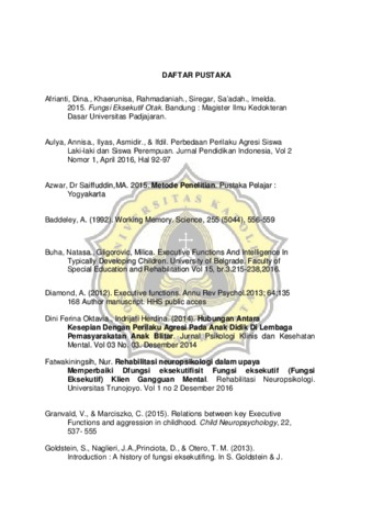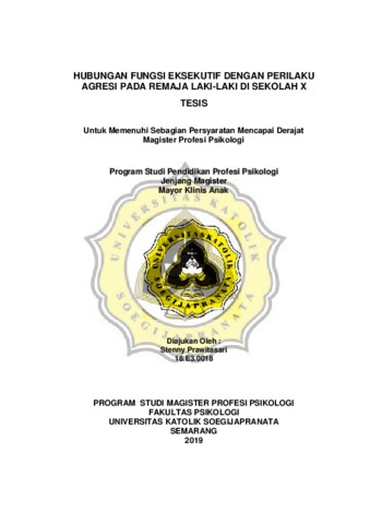 Prawitasari, Stenny (2019) HUBUNGAN FUNGSI EKSEKUTIF DENGAN PERILAKU AGRESI PADA REMAJA LAKI-LAKI DI SEKOLAH X. Masters thesis, UNIKA SOEGIJAPRANATA SEMARANG.