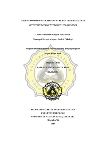 SARI, PATRISIA DINTA PUSPITA (2019) TOKEN EKONOMI UNTUK MENINGKATKAN ATENSI PADA ANAK ATTENTION DEFICIT HYPERACTIVITY DISORDER. Masters thesis, UNIKA SOEGIJAPRANATA SEMARANG.