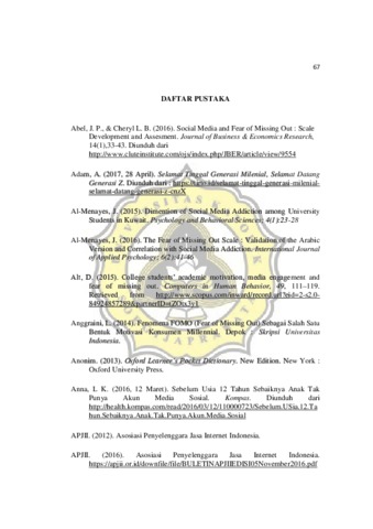 Purwantari, Bernadeta Intan Hanto (2019) HUBUNGAN ANTARA FEAR OF MISSING OUT DAN KONTROL DIRI DENGAN KECANDUAN MEDIA SOSIAL PADA MAHASISWA. Masters thesis, UNIKA SOEGIJAPRANATA SEMARANG.