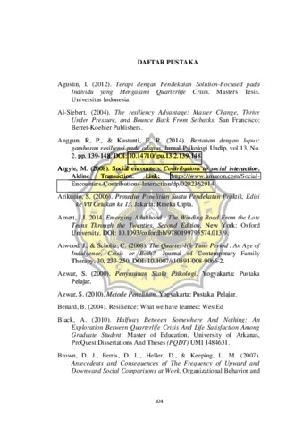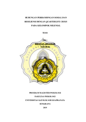 ARGASIAM, BRIGITAN (2019) HUBUNGAN PERBANDINGAN SOSIAL DAN RESILIENSI DENGAN QUARTERLIFE CRISIS PADA KELOMPOK MILENIAL. Masters thesis, UNIKA SOEGIJAPRANATA SEMARANG.