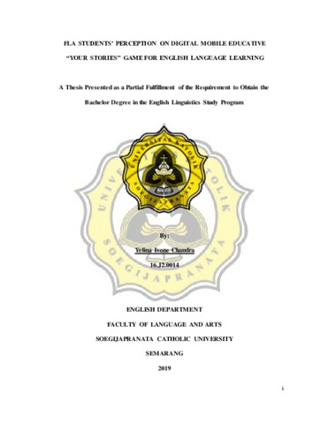Chandra, Yelina Ivone (2019) FLA STUDENTS’ PERCEPTION ON DIGITAL MOBILE EDUCATIVE “YOUR STORIES” GAME FOR ENGLISH LANGUAGE LEARNING. Other thesis, UNIKA SOEGIJAPRANATA SEMARANG.