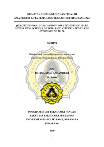 ANDAMDEWI, REGINA RISKI (2019) KUALITAS KONSUMSI PANGAN PELAJAR SMA NEGERI KOTA SEMARANG TERKAIT KEBERADAAN MALL. QUALITY OF FOOD CONSUMPTION FOR STUDENTS OF STATE SENIOR HIGH SCHOOLS OF SEMARANG CITY RELATED TO THE EXISTENCE OF MALL. Other thesis, UNIKA SOEGIJAPRANATA SEMARANG.