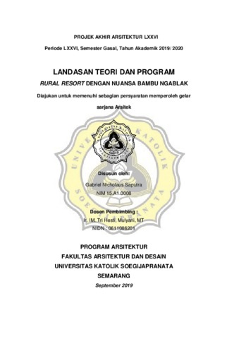 Saputra, Gabriel Nicholaus (2019) RURAL RESORT DENGAN NUANSA BAMBU NGABLAK. Other thesis, UNIVERSITAS KATOLIK SOEGIJAPRANATA.