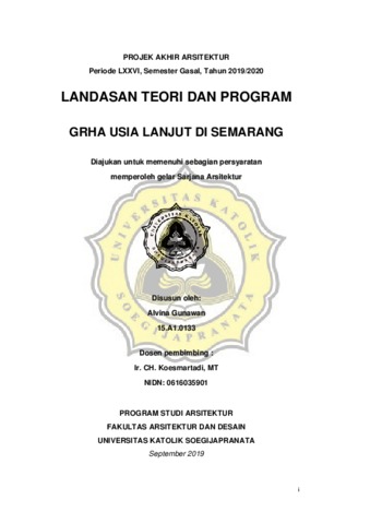 Gunawan, Alvina (2019) GRHA USIA LANJUT DI SEMARANG. Other thesis, UNIKA SOEGIJAPRANATA.