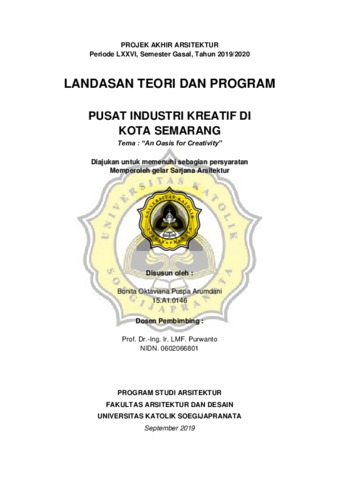 Arumdani, Bonita Oktaviana Puspa (2019) PUSAT INDUSTRI KREATIF DI KOTA SEMARANG Tema : “An Oasis for Creativity”. Other thesis, UNIKA SOEGIJAPRANATA.