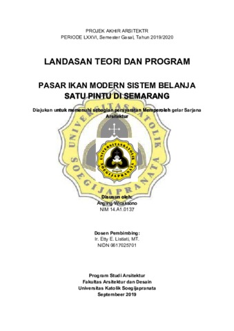 Wicaksono, Angling (2019) PASAR IKAN MODERN SISTEM BELANJA SATU PINTU DI SEMARANG. Other thesis, UNIKA SOEGIJAPRANATA SEMARANG.