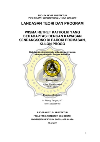 Prayudini, Klara Putri (2019) WISMA RETRET KATHOLIK YANG BERADAPTASI DENGAN KAWASAN SENDANGSONO DI PAROKI PROMASAN, KULON PROGO. Other thesis, UNIKA SOEGIJAPRANATA SEMARANG.