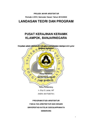 Saputri, Nandia Nanda (2019) PUSAT KERAJINAN KERAMIK KLAMPOK, BANJARNEGARA. Other thesis, UNIKA SOEGIJAPRANATA SEMARANG.