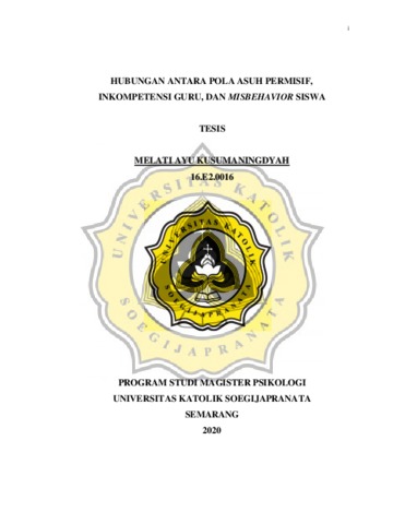 KUSUMANINGDYAH, MELATI AYU (2020) HUBUNGAN ANTARA POLA ASUH PERMISIF,INKOMPETENSI GURU, DAN MISBEHAVIOR SISWA. Masters thesis, UNIKA SOEGIJAPRANATA SEMARANG.