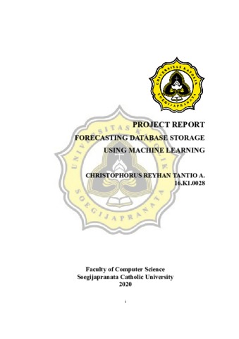 TANTIO, CHRISTOPHORUS REYHAN (2019) PROJECT REPORT FORECASTING DATABASE STORAGE USING MACHINE LEARNING. Other thesis, UNIKA SOEGIJAPRANATA SEMARANG.