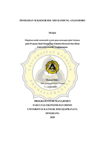 Yunarto, Hioe Leonardo Frans (2020) PEMILIHAN SUKSESOR RM. MIE BANDUNG ANJASMORO. Other thesis, Unika Soegijapranata Semarang.