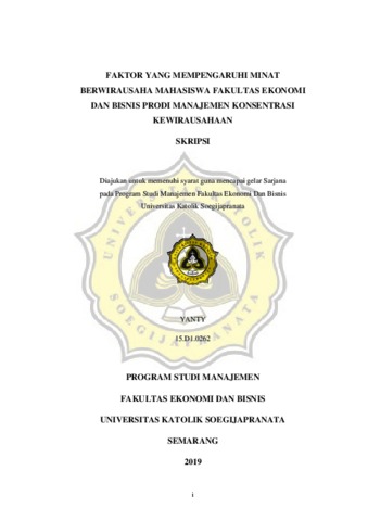 YANTY, - (2019) FAKTOR YANG MEMPENGARUHI MINAT BERWIRAUSAHA MAHASISWA FAKULTAS EKONOMI DAN BISNIS PRODI MANAJEMEN KONSENTRASI KEWIRAUSAHAAN. Other thesis, Unika Soegijapranata Semarang.