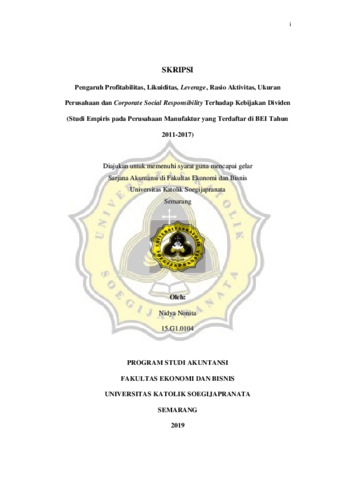 Nonita, Nidya (2019) Pengaruh Profitabilitas, Likuiditas, Leverage, Rasio Aktivitas, Ukuran Perusahaan dan Corporate Social Responsibility Terhadap Kebijakan Dividen (Studi Empiris pada Perusahaan Manufaktur yang Terdaftar di BEI Tahun 2011-2017). Other thesis, Unika Soegijapranata Semarang.