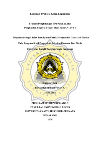 SEPTYANA A., RYANDIKA NUR (2020) Evaluasi Penghitungan PPh Pasal 21 Atas Penghasilan Pegawai Tetap ( Studi Pada CV XYZ ). Other thesis, Unika Soegijapranata Semarang.