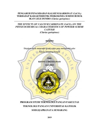 CHRISTIAWAN, KENNY (2019) PENGARUH PENAMBAHAN KALSIUM KARBONAT (CaCO3)TERHADAP KARAKTERISTIK FISIKOKIMIA SURIMI BUBUK IKAN LELE DUMBO (Clarias gariepinus). Other thesis, Unika Soegijapranata Semarang.