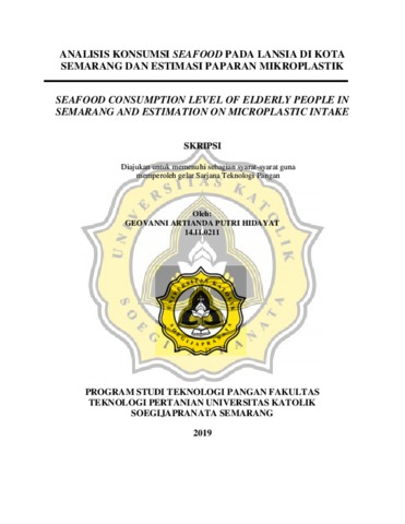 HIDAYAT, GEOVANNI ARTIANDA PUTRI (2019) ANALISIS KONSUMSI SEAFOOD PADA LANSIA DI KOTA SEMARANG DAN ESTIMASI PAPARAN MIKROPLASTIK. Other thesis, Unika Soegijapranata Semarang.