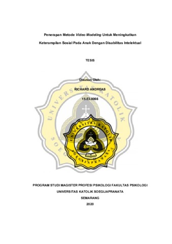 ANDREAS, RICHARD (2020) Penerapan Metode Video Modeling Untuk Meningkatkan Keterampilan Sosial Pada Anak Dengan Disabilitas Intelektual. Masters thesis, Unika Soegijapranata Semarang.