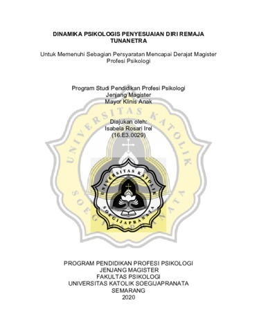 Irel, Isabela Rosari (2020) DINAMIKA PSIKOLOGIS PENYESUAIAN DIRI REMAJA TUNANETRA. Masters thesis, Unika Soegijapranata Semarang.