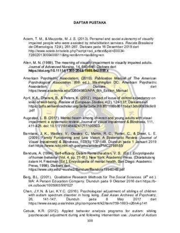Tujuan dari penelitian ini adalah untuk mengetahui dinamika psikologis penyesuaian diri remaja tunanetra. Penelitian ini merupakan penelitian kualitatif dengan pendekatan fenomenologis menggunakan teknik wawancara dan observasi. Subjek dari penelitian ini adalah tiga siswa tunanetra kelas menengah. Dinamika psikologis penyesuaian diri dilihat dari self-esteem, self-efficacy, locus of control, penerimaan diri dan sikap terhadap ketunanetraan. Hasil dari penelitian ini adalah setiap subjek mempunyai dinamika psikologis penyesuaian diri yang berbeda. Sikap terhadap ketunanetraan dan penerimaan diri berelasi dengan setiap dimensi lainnya dalam penyesuaian diri. Perbedaan penyesuaian diri dipengaruhi oleh faktor keluarga dan lingkungan.