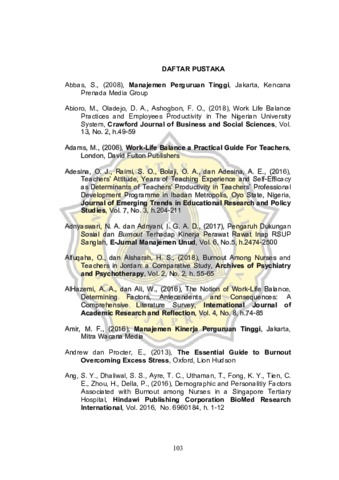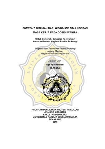Merdiani, Age Ayu (2019) BURNOUT DITINJAU DARI WORK-LIFE BALANCE DAN MASA KERJA PADA DOSEN WANITA. Masters thesis, Unika Soegijapranata Semarang.