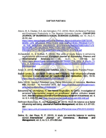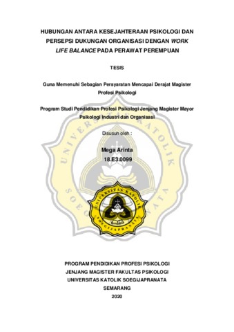 Arinta, Mega (2020) HUBUNGAN ANTARA KESEJAHTERAAN PSIKOLOGI DAN PERSEPSI DUKUNGAN ORGANISASI DENGAN WORK LIFE BALANCE PADA PERAWAT PEREMPUAN. Masters thesis, Unika Soegijapranata Semarang.