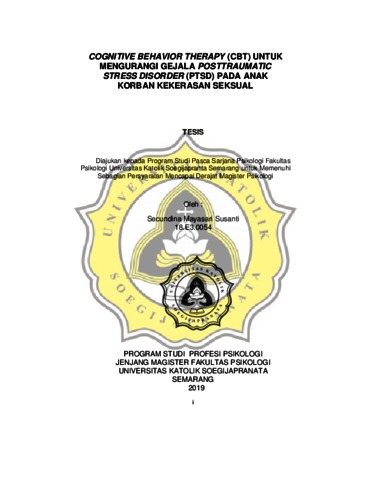 Susanti, Secundina Mayasari (2019) COGNITIVE BEHAVIOR THERAPY (CBT) UNTUK MENGURANGI GEJALA POSTTRAUMATIC STRESS DISORDER (PTSD) PADA ANAK KORBAN KEKERASAN SEKSUAL. Masters thesis, Unika Soegijapranata Semarang.