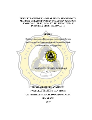 RAHARDANI, MARGARETA ERNANDA (2019) PENGUKURAN KINERJA DEPARTEMEN SUMBER DAYA MANUSIA MELALUI PENDEKATAN HUMAN RESOURCE SCORECARD (HRSC) PADA PT. TELEKOMUNIKASI INDONESIA DIVISI REGIONAL IV. Other thesis, Unika Soegijapranata Semarang.