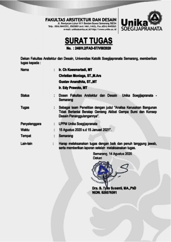 KOESMARTADI, CHRISTOPHORUS and MONIAGA, CHRISTIAN and ANANDHITA, GUSTAV and PRAWOTO, EDY Analisa Kerusakan Bangunan Tidak Berlantai Beratap Genteng Akibat Gempa Bumi dan Konsep desain Penanggulangannya. Project Report. Unika Soegijapranata. (Unpublished)