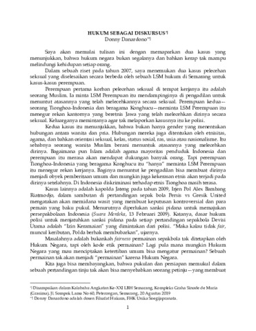 Danardono, Donny HUKUM Sebagai DISKURSUS. Discussion Paper. Unika Soegijapranata, Semarang. (Unpublished)
