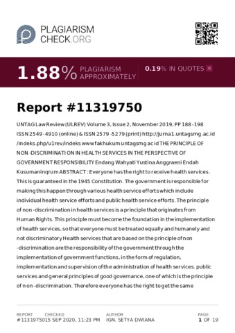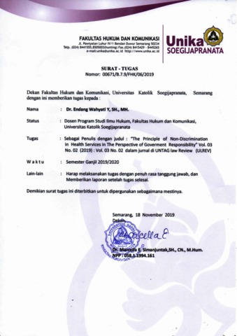 YUSTINA, ENDANG WAHYATI and Kusumaningrum, Anggraeni Endah (2019) The Principle of Non-Discrimination In Health Services In The Perspective Of Government Responsibility. UNTAG LAW REVIEW (ULREV), 3 (2). pp. 188-198. ISSN 2549-4910 (online), 2579-5279 (print)