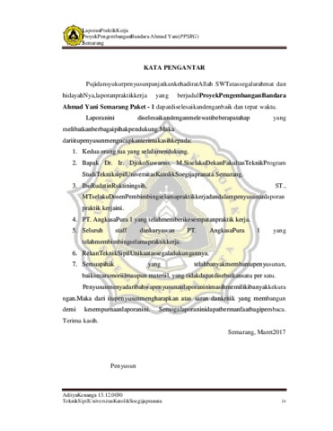 Kenanga, Aditya (2017) Laporan Akhir Praktik Kerja PROYEK PENGEMBANGAN BANDARA AHMAD YANI SEMARANG PAKET 1 – PEKERJAAN AKSES JALAN UTAMA (KONSENTRASI BAHAN BANGUNAN). Project Report. Unika Soegijapranata Semarang, Semarang.