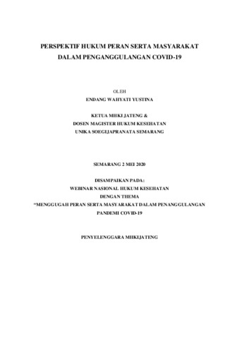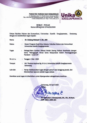 YUSTINA, ENDANG WAHYATI (2020) PERSPEKTIF HUKUM PERAN SERTA MASYARAKAT DALAM PENGANGGULANGAN COVID-19. In: MENGGUGAH PERAN SERTA MASYARAKAT DALAM PENANGGULANGAN PANDEMI COVID-19, WEBINAR NASIONAL HUKUM KESEHATAN. (Unpublished)