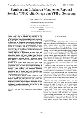 PERMATASARI, VINCENTIA ANANDA ARUM and PASARIBU, ROTUMIAR (2019) Seminar dan Lokakarya Manajemen Reputasi Sekolah YPKK Alfa Omega dan YPII di Semarang. Prosiding Seminar Nasional Hasil Pengabdian Masyarakat, 4 (1). pp. 561-567. ISSN 2541-3805