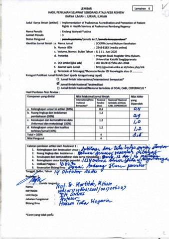 Subawati, Intaningtyas and YUSTINA, ENDANG WAHYATI and Koentjoro, C Tjahyono (2020) Implementation of Puskesmas Accreditation and Protection of Patient Rights in Health Services at Puskesmas Rembang Regency. SOEPRA Jurnal Hukum Kesehatan, 6 (1). pp. 143-152. ISSN 2548-818X (media online)