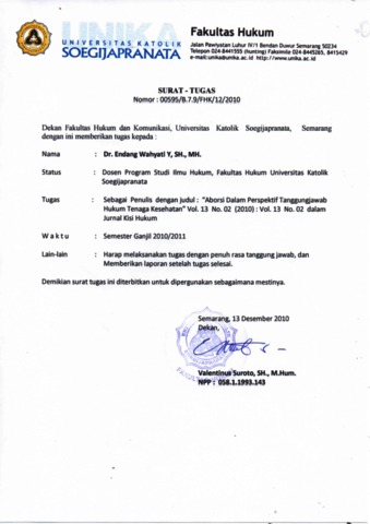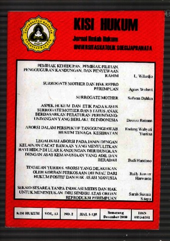 YUSTINA, ENDANG WAHYATI (2010) ABORSI DALAM PERSPEKTIF TANGGUNGJAWAB HUKUM TENAGA KESEHATAN. KISI HUKUM Jurnal Ilmiah Hukum, 11 (2). pp. 57-81. ISSN 0853-8591