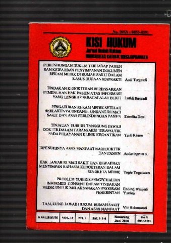 YUSTINA, ENDANG WAHYATI (2020) PROBLEM YURIDIS PENGECUALIAN INFORMED CONSENT DALAM TINDAKAN MEDIK UNTUK MELAKSANAKAN PROGRAM PEMERINTAH. KISI HUKUM Jurnal Ilmiah Hukum, 13 (1). pp. 108-125. ISSN 0853-8591
