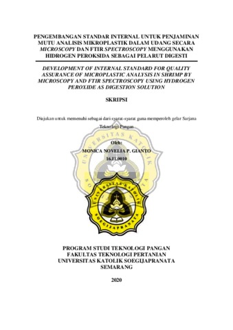 GIANTO, MONICA NOVELIA P. (2020) PENGEMBANGAN STANDAR INTERNAL UNTUK PENJAMINAN MUTU ANALISIS MIKROPLASTIK DALAM UDANG SECARA MICROSCOPY DAN FTIR SPECTROSCOPY MENGGUNAKAN HIDROGEN PEROKSIDA SEBAGAI PELARUT DIGESTI. Other thesis, Unika Soegijapranata Semarang.