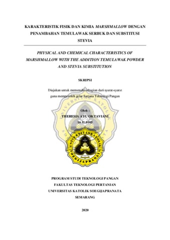 OKTAVIANI, THERESIA AYU (2020) KARAKTERISTIK FISIK DAN KIMIA MARSHMALLOW DENGAN PENAMBAHAN TEMULAWAK SERBUK DAN SUBSTITUSI STEVIA. Other thesis, Unika Soegijapranata Semarang.