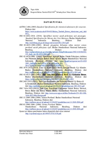 Adrithia, Giovanno Adnan (2020) PENGARUH BAHAN TAMBAH POLCON® TERHADAP KUAT TEKAN MORTAR. Other thesis, Universitas Katolik Soegijapranata Semarang.