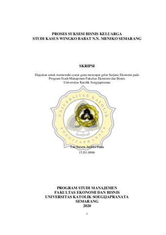 Putra, Tan Steven Andika (2020) PROSES SUKSESI BISNIS KELUARGA STUDI KASUS WINGKO BABAT N.N. MENIKO SEMARANG. Other thesis, Unika Soegijapranata Semarang.