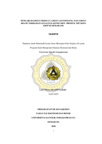 SARI, ALVONSA PRADIPTA (2020) PENGARUH GREEN PRODUCT, GREEN ADVERTISING, DAN GREEN BRAND TERHADAP LOYALITAS KONSUMEN PRODUK THE BODY SHOP DI SEMARANG. Other thesis, Unika Soegijapranata Semarang.