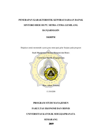 Yunarto, Hioe, Albert (2020) PENERAPAN KARAKTERISTIK KEWIRAUSAHAAN BAPAK SINTORO HIOE DI PT. MITRA CITRA GEMILANG BANJARMASIN. Other thesis, Unika Soegijapranata Semarang.
