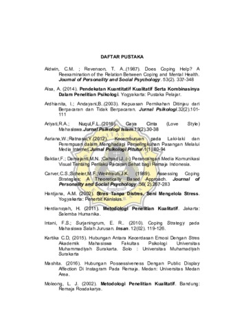 Duvadilan, Riznawan Faubygest (2020) COPING STRES INDIVIDU YANG MEMPUNYAI PACAR POSESIF. Other thesis, Unika Soegijapranata Semarang.