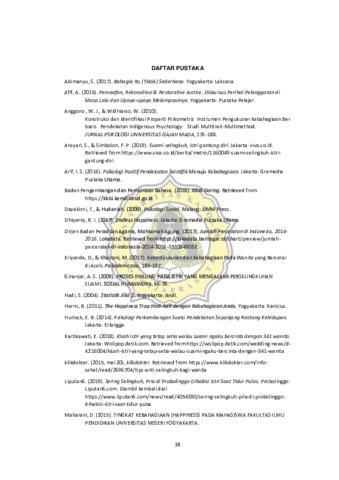 Dewi, Deanda Sunggawa (2020) HUBUNGAN ANTARA PEMAAFAN DAN KEBAHAGIAAN PADA ISTRI YANG SUAMINYA BERSELINGKUH. Other thesis, Unika Soegijapranata Semarang.
