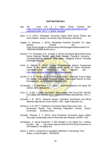 Penelitian ini bertujuan untuk mengetahui gambaran successful aging di era digital pada lansia. Penelitian ini dilakukan dengan metode kualitatif deskriptif fenomenologis kepada tiga subjek berusia 73 tahun keatas. Kemudian hasil temuan dianalisa dengan tugas perkembangan lansia, faktor-faktor Successful Aging yang dikemukakan oleh Mac Arthur Fondation sehingga ditemukan gambaran successful aging pada lansia. Hasil penelitian menunjukan gambaran penuaan yang berhasil yang dapat diteladani ialah ; umur panjang, dapat melakukan kegiatan secara mandiri, sehat mental jasmani, dan rohani, dapat memberi makna hidup bagi orang disekelilingnya, aktid secara sosial, menggunakan teknologi, tidak berkonflik dan mampu mengampuni, mampu memberikan sebagian hartanya untuk sesama dan pelayanan, dapat berjualan dan mendapat penghasilan