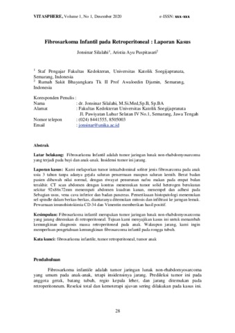 SILALAHI, JONSINAR (2020) Fibrosarkoma Infantil pada Retroperitoneal : Laporan Kasus. Vitasphere : Jurnal Manajemen Kualitas Hidup, 1 (1). pp. 28-33. ISSN 2085-7683