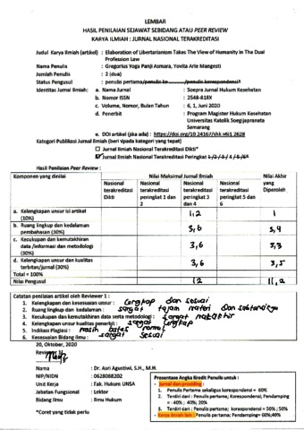 Asmara, Gregorius Yoga Panji and Mangesti, Yovita Arie (2020) Hasil Peer Review Elaboration of Libertarianism Takes The View of Humanity in The Dual Profession Law. Program Magister Hukum Kesehatan Universitas Katolik Soegijapranata Semarang, Soepra Jurnal Hukum Kesehatan.