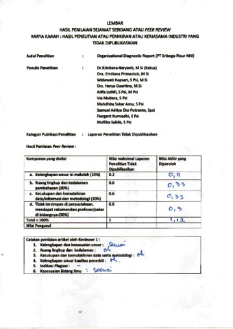 Haryanti, Kristiana and PRIMASTUTI, EMILIANA and Hapsari, Widawati and GOERITNO, HARYO and luthfi, arifia and mutiara, via and amu, madhita sekar and kurniadi, fiergant and sabila, muflika (2018) Organizational Diagnostic Report (PT. Sriboga Flour Mill). UNIKA SOEGIJAPRANATA, Semarang. (Unpublished)