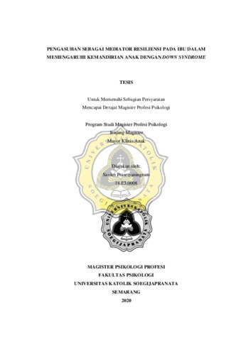 Prasetyaningrum, Savitri (2020) PENGASUHAN SEBAGAI MEDIATOR RESILIENSI PADA IBU DALAM MEMENGARUHI KEMANDIRIAN ANAK DENGAN DOWN SYNDROME. Masters thesis, Universitas Katolik Soegijapranata Semarang.